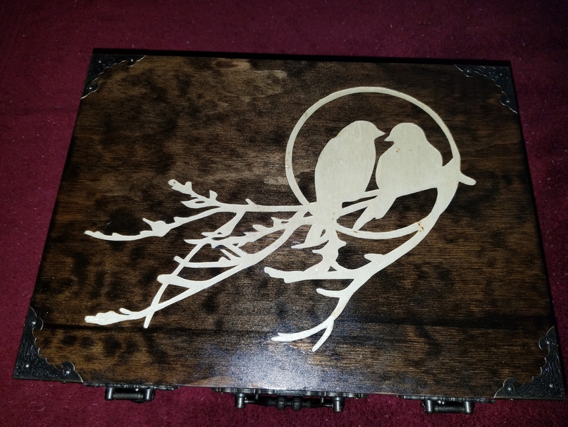 Jewelry Box (Premium) Anniversary Love Birds Box Date: September 25, 2017Author: Rob September 2017 In the second picture you can see the left clasp is broke. I unfortunately did not have time to get a photo of it with the replaced one. Share this:TweetLike Loading... Related